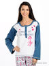 Детали: кофта с длинный рукавом и круглым вырезом; застегивается на кнопки; декорирована оригинальными аппликациями и вышивкой; брюки посажены на резинку; декорированы оригинальным принтом и планкой с пуговицами