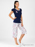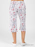 Брюки из мягкого тонкого хлопкового материала. В пояс брюк вставлена резинка. Изделие украшено принтами.