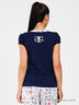 Трикотажная футболка прямого силуэта с округлым вырезом горловины и коротким рукавом-фонариком. Застежка на четыре кнопки на полочке. Полочка украшена аппликациями и вышивкой.