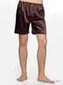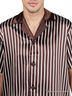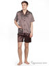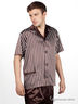 Стильная пижама из сатина. Рубашка с отложным воротником, на пуговицах и с одним карманом украшена принтом "полоска". Отложной воротник выполнен из однотонного материала. Шорты с поясом на эластичной резинке. Гульфик застегивается на одну пуговицу.