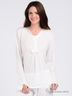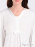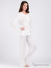 Детали: v-образный вырез, длинные рукава, спереди застегивается на пуговицы, манжеты, низ и воротник украшены атласными вставками, по бокам разрезы, в комплекте прямые брюки на резинке