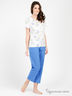 Великолепная пижама состоит из футболки и капрей. Футболка с округлым вырезом и коротким рукавом декорирована рисунком. Капри на резинке. Отличный вариант для тех, кто ценит комфорт и качество.