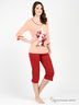 Великолепная пижама из хлопкового трикотажа. Лонгслив с округлым вырезом и рукавом 3/4 декорирован принтом на полочке. Бриджи на резинке. Отличный вариант для тех, кто ценит комфорт и качество.