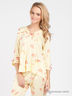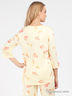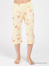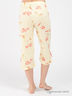 Детали: округлый вырез горловины декорирован гипюровым кружевом и атласными лентами, укороченный прямой рукав, капри на резинке, декорированы разрезами по бокам с кружевными вставками