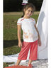 Удобная хлопковая пижама, состоящая из футболки и шорт на эластичном поясе. Изделия выполнены в нежной расцветке. Модель оформлена симпатичным принтом.