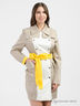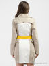 Стильный плащ приталенного силуэта. Модель с центральной застежкой на пуговицы и отложным воротником. Талия подчеркнута поясом-завязкой. Украшен контрастной расцветкой. Отличный вариант для повседневного ношения.