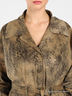 Детали: отложной воротник, прямой рукав 3/4, застежка на кнопки, в шлевки продет пояс, два кармана