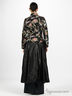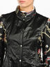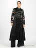 Очаровательный плащ приталенного покроя, расклешенный к низу. Длинные рукава. Застежка на кнопки. Спинка и рукава декорированы принтом.