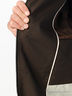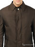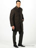 Детали: отложной ворот, застежка на молнии и на клапане с пуговицей, рукав длинный прямой с хлястиком на пуговице в качестве отделки, один внутренний прорезной карман на молнии, два прорезных кармана с листочком на пуговице, плащ с одним шлицом.