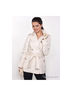 Стильный укороченный плащ из гладкой ткани. Стояче отложной воротник с лацканами. Двубортная застежка на пуговицы. Длинные прямые рукава с манжетами. Два прорезных кармана. Талия подчеркивается поясом.
