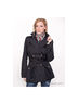 Стильный укороченный плащ из гладкой ткани. Стояче отложной воротник с лацканами. Двубортная застежка на пуговицы. Длинные прямые рукава с манжетами. Два прорезных кармана. Талия подчеркивается поясом.