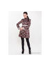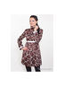 Потрясающий женский плащ с завышенной талией из гладкой ткани с оригинальным принтом. Воротник-стойка. Отрезной лиф изделия подчеркнут однотонным пояском и тремя декоративными карманами с клапанами. Застежка на пуговицы. Два прорезных кармана. Длинные прямые рукава на манжетах с однотонными вставками.