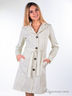 Стильный женский плащ из гладкого материала. Модель приталенного силуэта. Отложной воротник с лацканами. Застежка на пуговицы. Два прорезных кармана спереди. Спинка, низ рукавов и подол декорированы складками. Талия подчеркивается с помощью пояса. Отличный вариант на каждый день!