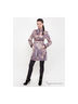 Потрясающий женский плащ с завышенной талией из гладкой ткани с оригинальным принтом. Воротник-стойка. Отрезной лиф изделия подчеркнут однотонным пояском и тремя декоративными карманами с клапанами. Застежка на пуговицы. Два прорезных кармана. Длинные прямые рукава на манжетах с однотонными вставками.