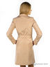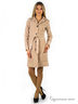 Стильный женский плащ из гладкого материала. Модель приталенного силуэта. Отложной воротник с лацканами. Застежка на пуговицы. Два прорезных кармана спереди. Спинка, низ рукавов и подол декорированы складками. Талия подчеркивается с помощью пояса. Отличный вариант на каждый день!