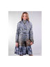 Оригинальный плащ из гладкой ткани с эффектным принтом. Стояче-отложной воротник с лацканами. Двубортная застежка. Длинные прямые рукава. Талия подчеркнута стильным поясом.