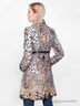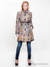 Потрясающий женский плащ с завышенной талией из гладкой ткани с оригинальным принтом. Воротник-стойка. Отрезной лиф изделия подчеркнут однотонным пояском и тремя декоративными карманами с клапанами. Застежка на пуговицы. Два прорезных кармана. Длинные прямые рукава на манжетах с однотонными вставками.