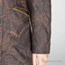 Легкий плащ из ткани удивительной красоты, имитирующий состаренную кожу с шитьем хлопковой нитью. Отрезной по линии талии. Полуприлегающий силуэт. Высокий стильный воротник-стойка с навесной петлей под пуговицу. Два больших накладных кармана на молнии. Нагрудный прорезной карман на молнии. Рукава на уровне локтя украшены тройными вытачками-рельефами. Яркая подкладка глубокого террактового цвета. Материал 70% полиамид, 30% вискоза.