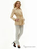 Элегантный укороченный плащ приталенного силуэта. Стояче-отложной воротник с лацканами. Двубортная застежка на пуговицы. Два прорезных кармана. Полочки декорированы кокеткой. Длинные прямые рукава с патами на манжетах. Талия подчеркнута поясом.