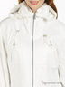 Детали: в широком отложном вороте спрятан капюшон, спереди четыре втачных кармана на молнии, в поясе вставка из эластичной резинки