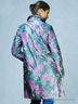 Эффектный яркий плащ и атласной ткани с россыпью цветов. Прямой силуэт. Застежка на пуговицы. Отложной воротник. Спереди два врезных кармана.
