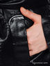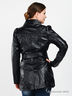 Стильный плащ из фактурного материала с эффектом "под кожу". Отложной ворот с лацканами. Застежка на пуговицы. Длинные рукава, декорированные на манжетах пришитыми пуговицами. На полочках два прорезных кармана с клапанами. Талия подчеркивается поясом в шлевках. На спинке распложены две шлицы.