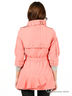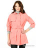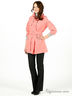 Детали: двубортная модель застегивается на пуговицы, отложной ворот, два передних кармана, один внутренний карман, манжеты с декоративными хлястиками, декоративные сборки и оборка на спинке, пояс в комплекте
