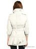 Детали: двубортная модель застегивается на пуговицы, отложной ворот, два передних кармана, один внутренний карман, манжеты с декоративными хлястиками, декоративные сборки и оборка на спинке, пояс в комплекте
