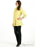 Детали: двубортная модель застегивается на пуговицы, отложной ворот, два передних кармана, один внутренний карман, манжеты с декоративными хлястиками, декоративные сборки и оборка на спинке, пояс в комплекте