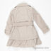 Детали: двубортная модель, отложной ворот с лацканами, пришиты шлевки, поясок в комплекте, декоративные паты, оборка по нижней части изделия