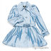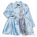 Плащ для девочки приталенного силуэта с двухбортной застежкой, с рельефными швами. Воротник отложной на стойке. Рукав - полуреглан со сборкой по окату. По линии талии мягкие складочки и съемный пояс с декоративными розами.