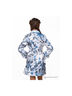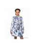 Замечательный плащ для юных модниц. Модель на подкладке с двубортной застежкой на пуговицы. Воротник отложной. Линию талии подчеркивает текстильный пояс. Плащ оформлен красочным рисунком.