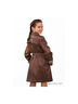 Замечательный плащ для юных модниц. Модель на подкладке с двубортной застежкой на пуговицы. Воротник отложной. Линию талии подчеркивает текстильный пояс. Плащ оформлен красочным рисунком.