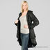 Стильный плащ с капюшоном и удлиненной спинкой, пояс "посажен" на резинку. Спереди накладные объемные карманы с клапаном, на груди врезные карманы с застежкой на молнией.