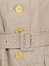 Стильный плащ приталенного силуэта. Модель с центральной застежкой на пуговицы и отложным воротником. Талия подчеркнута поясом. Отличный вариант для повседневного ношения.