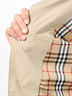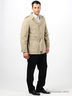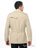 Детали: застежка на пуговицы, отложной воротник, два кармана, один внутренний карман на молнии, пояс продет в шлевки, задняя часть изделия с манишкой на пуговице, выполенна шлица