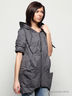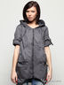 Оригинальный плащ свободного кроя с капюшоном и укороченным рукавом застегивается на молнию.
