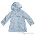 Плащ из водоотталкивающей ткани на флисовой подкладке с капюшоном на резинке для более плотного прилегания по голове и с хлястиком для регулировки по талии.