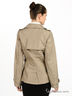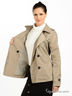 Детали: короткий плащ, воротник втачной отложной, два врезных боковых кармана на пуговице, застежка на пуговицах, рукав двухкроеный длинный прямой, небольшие погоны на плечах в качестве отделки, на рукавах аксессуар в виде ремешка из ткани застегивающегося на пуговицу, позволяет закатать рукава, изделие имеет шлевки под пояс.
