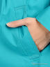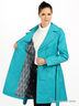 Детали: широкий отложной втачной воротник, глубокий V-образный вырез, двубортная застежка на пуговицах, рукав длинный двухкроеный заужен к запястью, небольшая сборка по линии талии, шлевки для ремня и ремень из основной ткани в комплекте, два боковых врезных кармана.
