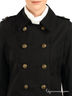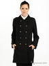 Детали: втачной отложной воротник на стойке, двубортная застежка на декоративных пуговицах, небольшие погоны на плечах в качестве отделки, два врезных боковых кармана, рукав длинный двухкроеный прямой посажен на широкую манжету с листочком из основной ткани, сзади хлястик на пуговице.