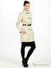 Детали: втачной ворот стойка, двубортная застежка на пуговицах, ремень и шлевки для ремня, два врезных кармана, рукав длинный двухкроеный заужен к запястью, небольшие погоны на плечах в качестве отделки.