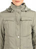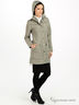 Детали: ворот стойка, застежка на молнии и на металлической кнопке застегивается до основания шеи, два боковых врезных кармана декорированы листочком на металлических кнопках, листочки на груди в качестве отделки, рукава длинные двухкроеные заужены к запястью, капюшон пристегивается на металлические кнопки, по низу изделия вшита резинка, по линии пояса так же вшита резинка, позволяющая стянуть изделия на поясе.