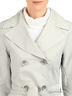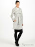Детали: широкий отложной втачной воротник, глубокий V-образный вырез, двубортная застежка на пуговицах, рукав длинный двухкроеный заужен к запястью, небольшая сборка по линии талии, шлевки для ремня и ремень из основной ткани в комплекте, два боковых врезных кармана.