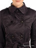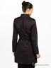 Детали: плащ - тренч, втачной отложной воротник на стойке у основания горла застегивается на хлястик с пуговицей, модель чуть выше колена, двубортность, пояс из основного материала и шлевки для пояса, застежка на пуговицах, рукав длинный двухкроеный заужен к запястью, два врезных боковых кармана с листочком на пуговице, небольшие погоны на плечах в качестве отделки.