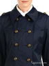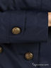 Детали: втачной отложной воротник на стойке, двубортная застежка на декоративных пуговицах, небольшие погоны на плечах в качестве отделки, два врезных боковых кармана, рукав длинный двухкроеный прямой посажен на широкую манжету с листочком из основной ткани, сзади хлястик на пуговице.