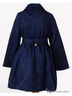 Замечательный плащ для юных модниц. Модель на подкладке с эффектом двубортной застежки, застежка на молнию. Воротник отложной. Линию талии подчеркивает текстильный пояс. Крупные золотистые пуговицы в качестве декора. Модель благородного синего цвета.
