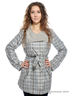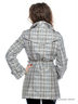 Стильный женский плащ с оригинальным принтом клетка. Ворот может быть как отложным, так и стойкой, два кармана. Застежка на пуговицах с эффектом двубортности. К комплекте пояс.