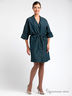 Оригинальный плащ из тонкого дюспо. Стояче-отложной ворот с лацканами. Застежка на пуговицы. Укороченные цельнокроеные рукава-кимоно. Талия подчеркивается пояском на кулиске. Спинка декорирована оригинальной отлетной кокеткой.