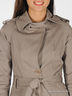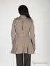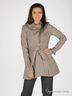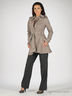 Плащ приталенного кроя. На рукавах декоравтивный элемент в виде хлястиков. Застежка- пуговицы. 2 втачных набедренных кармана на клапане.